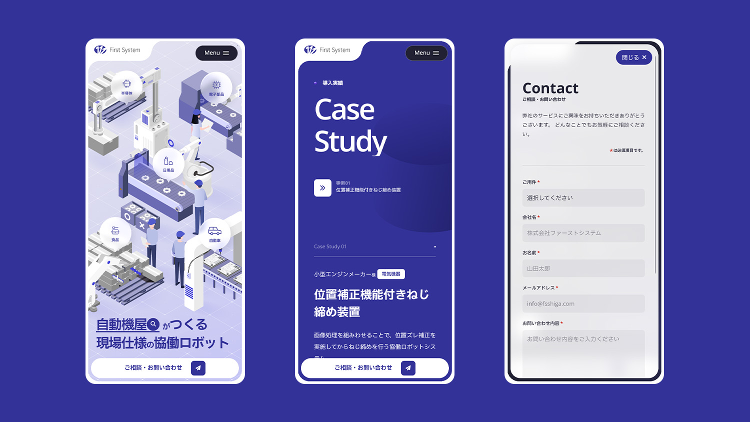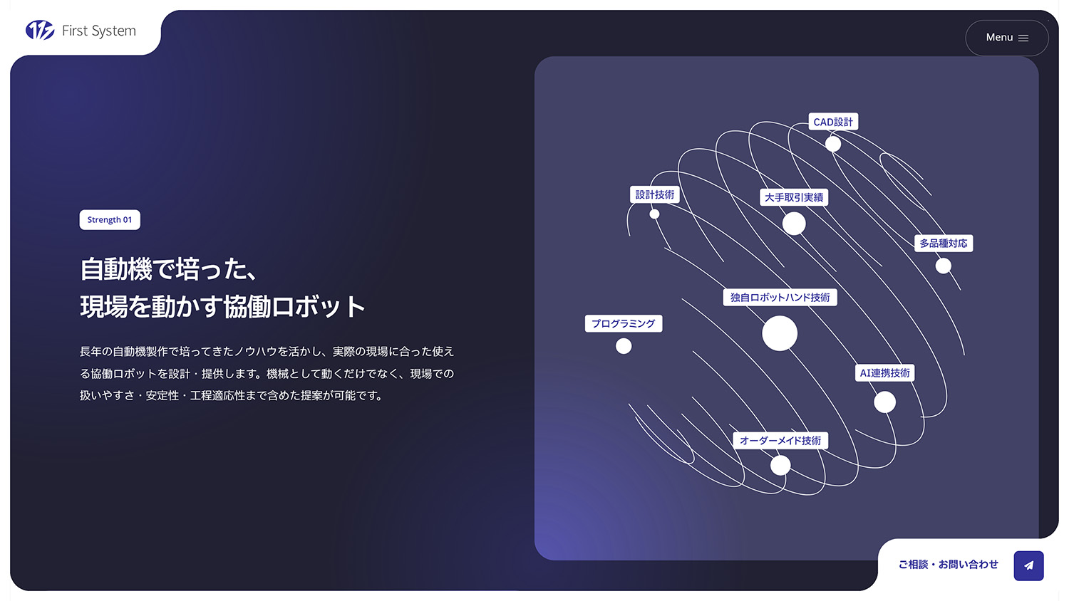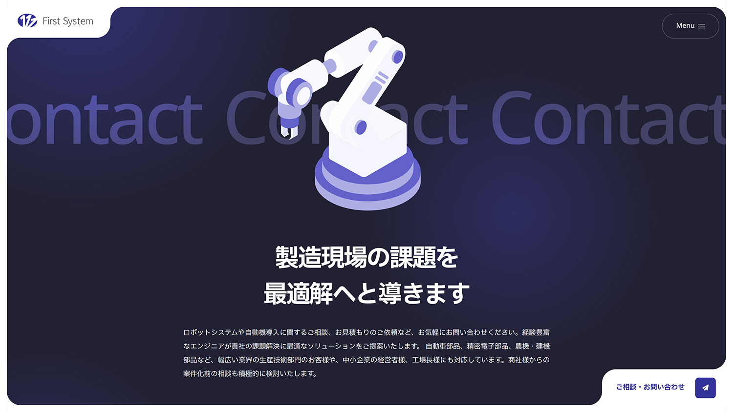 製造工程の自動化設備を手がける企業による、協働ロボットの導入提案を目的としたランディングページです。