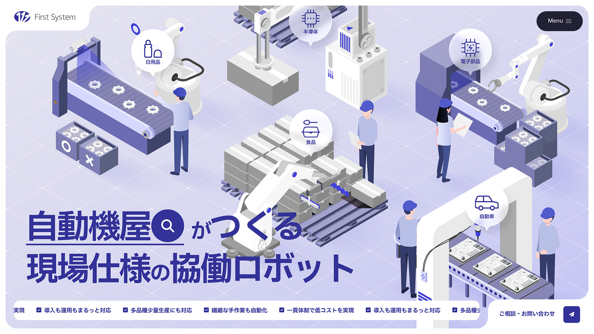 本LPでは、製造工程全体の設計から自動化までを手がけてきた知見をもとに、導入から運用まで一貫して対応できる強みを、分かりやすく整理しました。